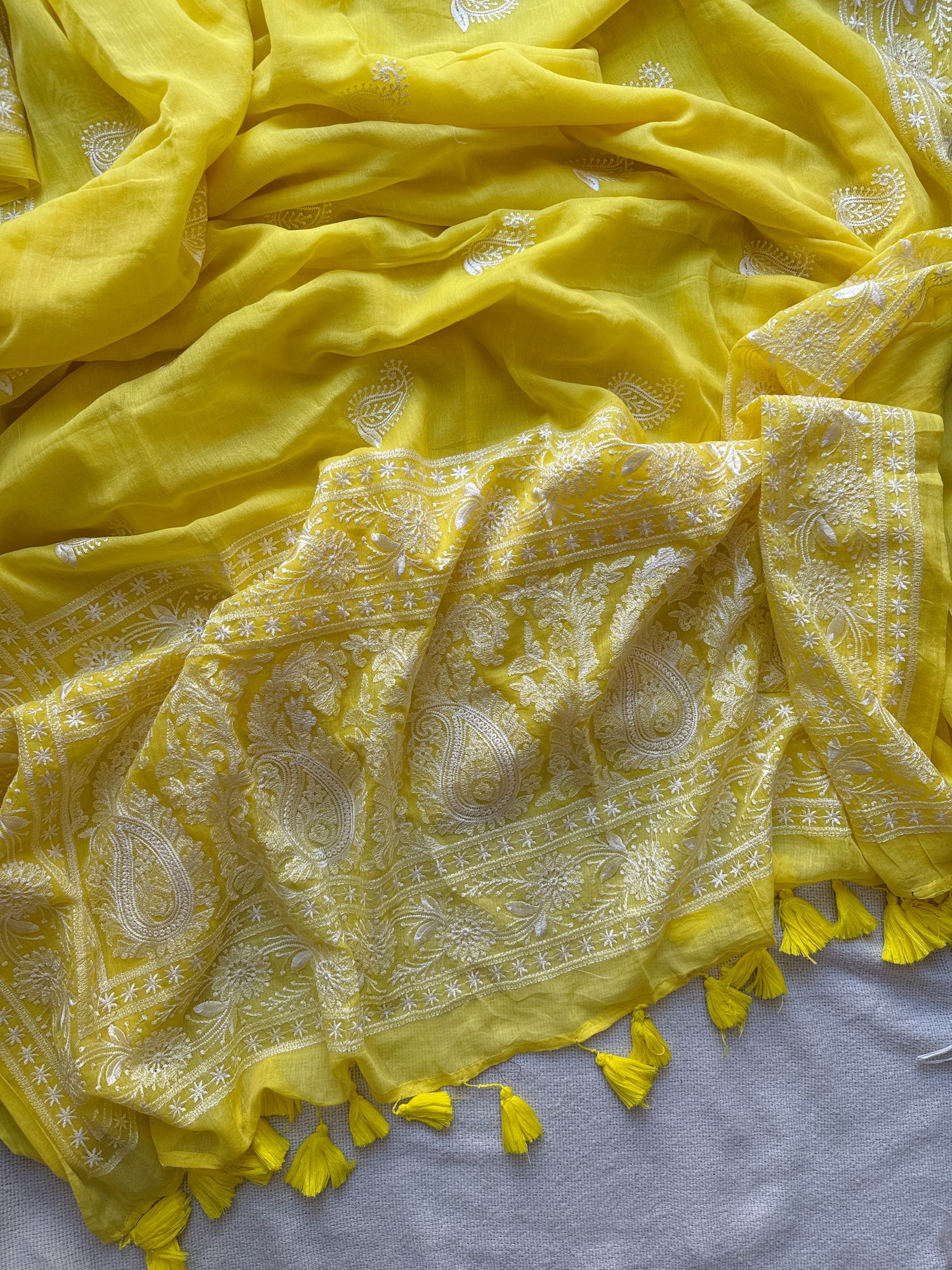 Pink and Off White Golden Zari Bordered Mul cotton Saree