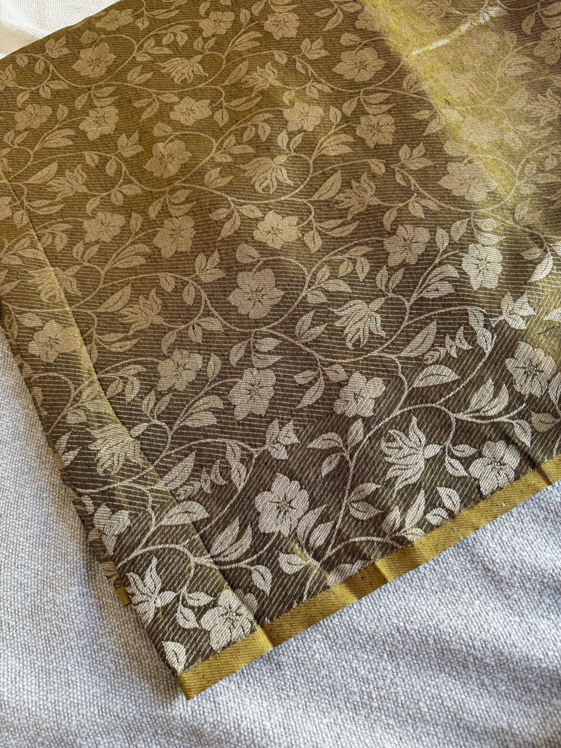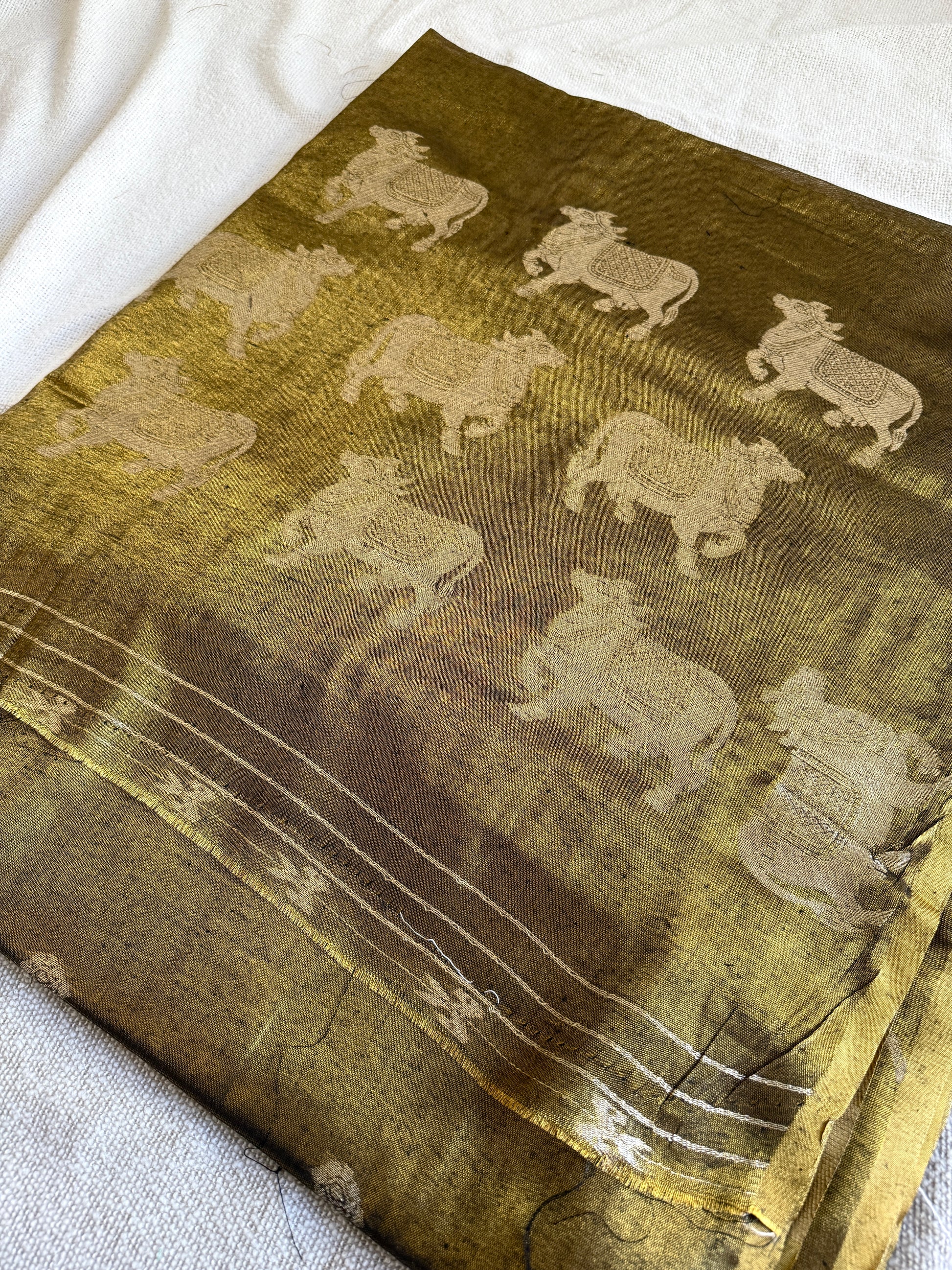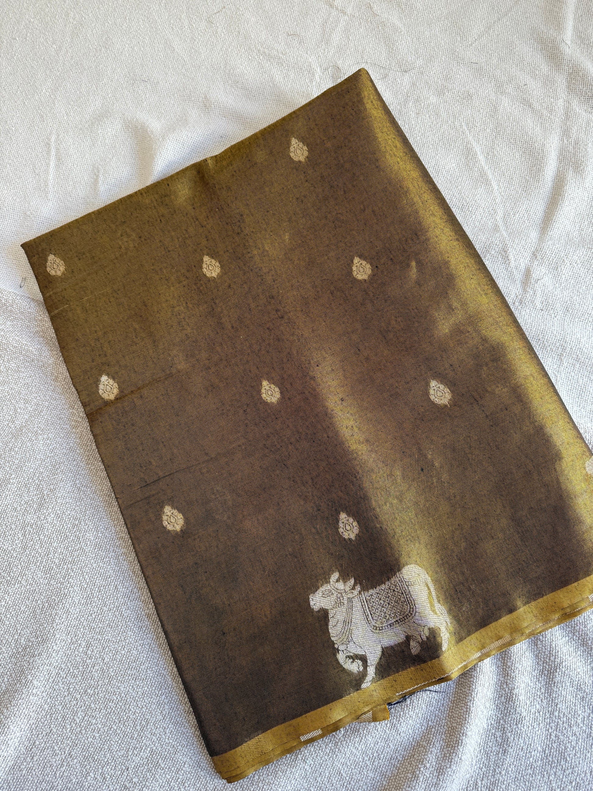 Copper Linen Tissue Cow Motif Saree
