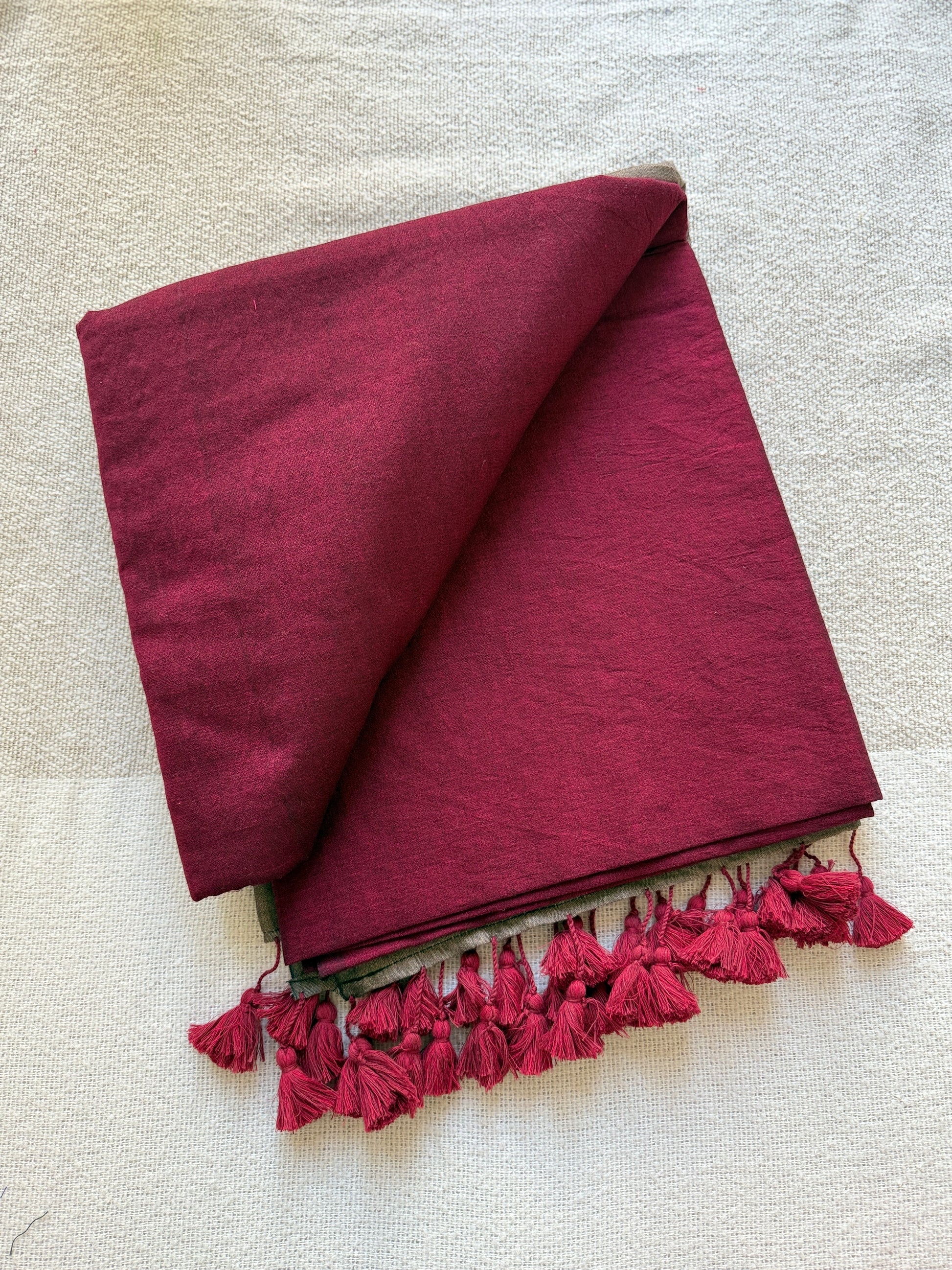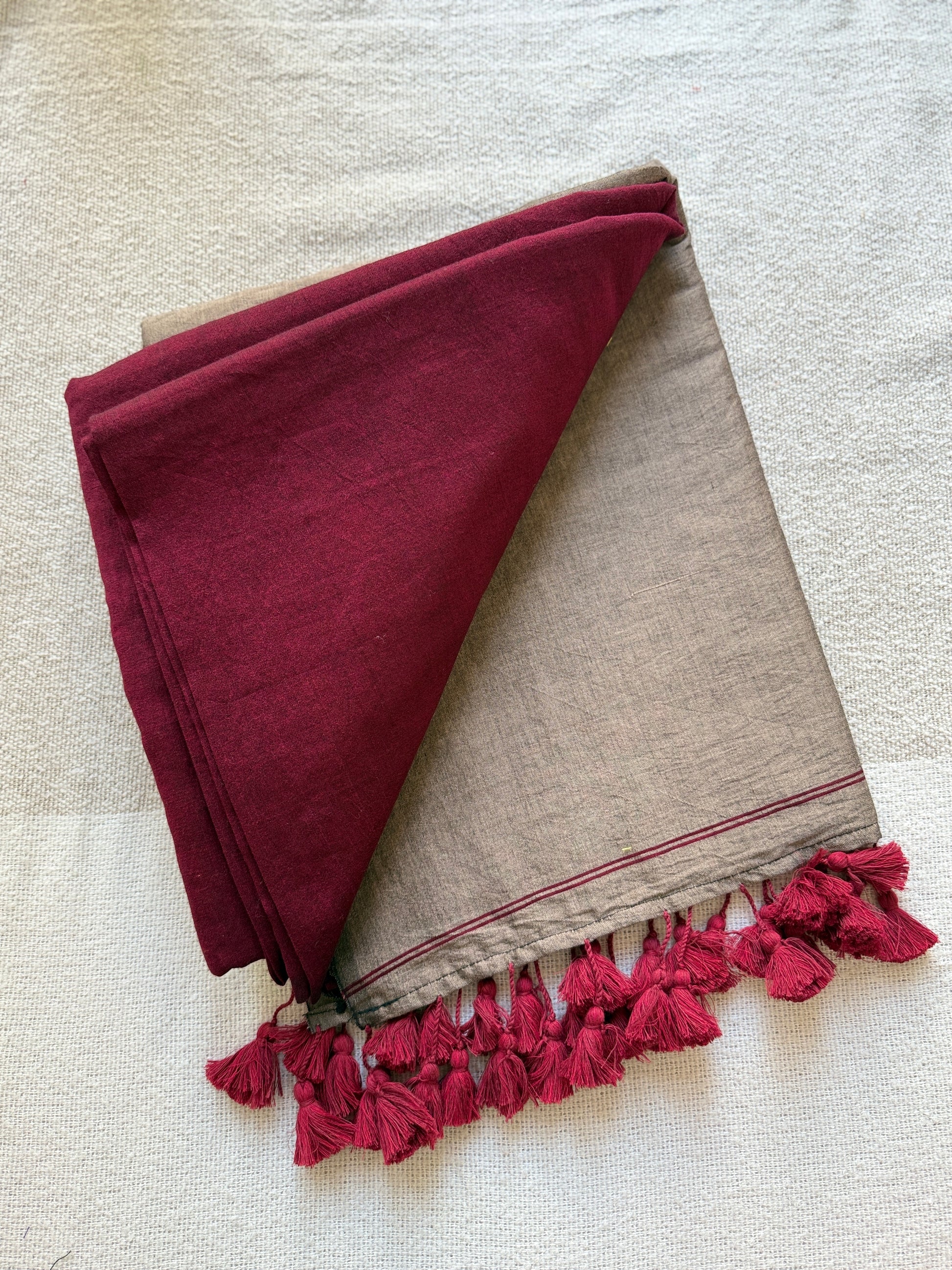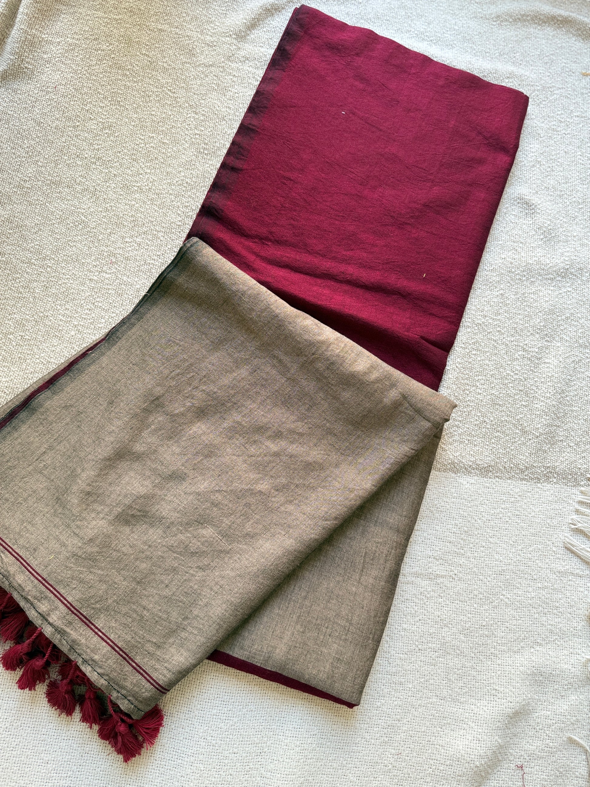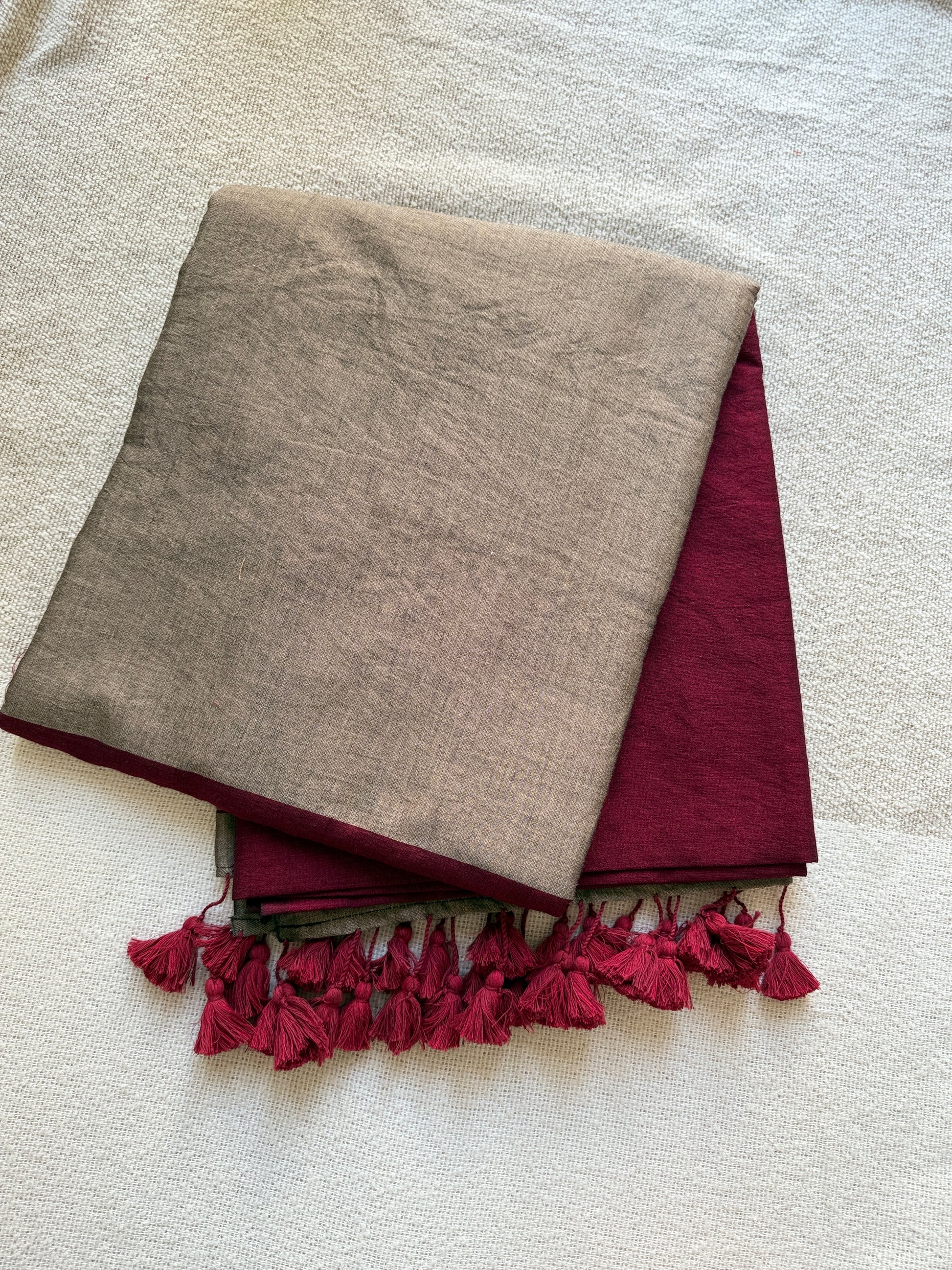 This dual-tone saree features a plain, minimal body paired with a beautifully contrasting pallu.