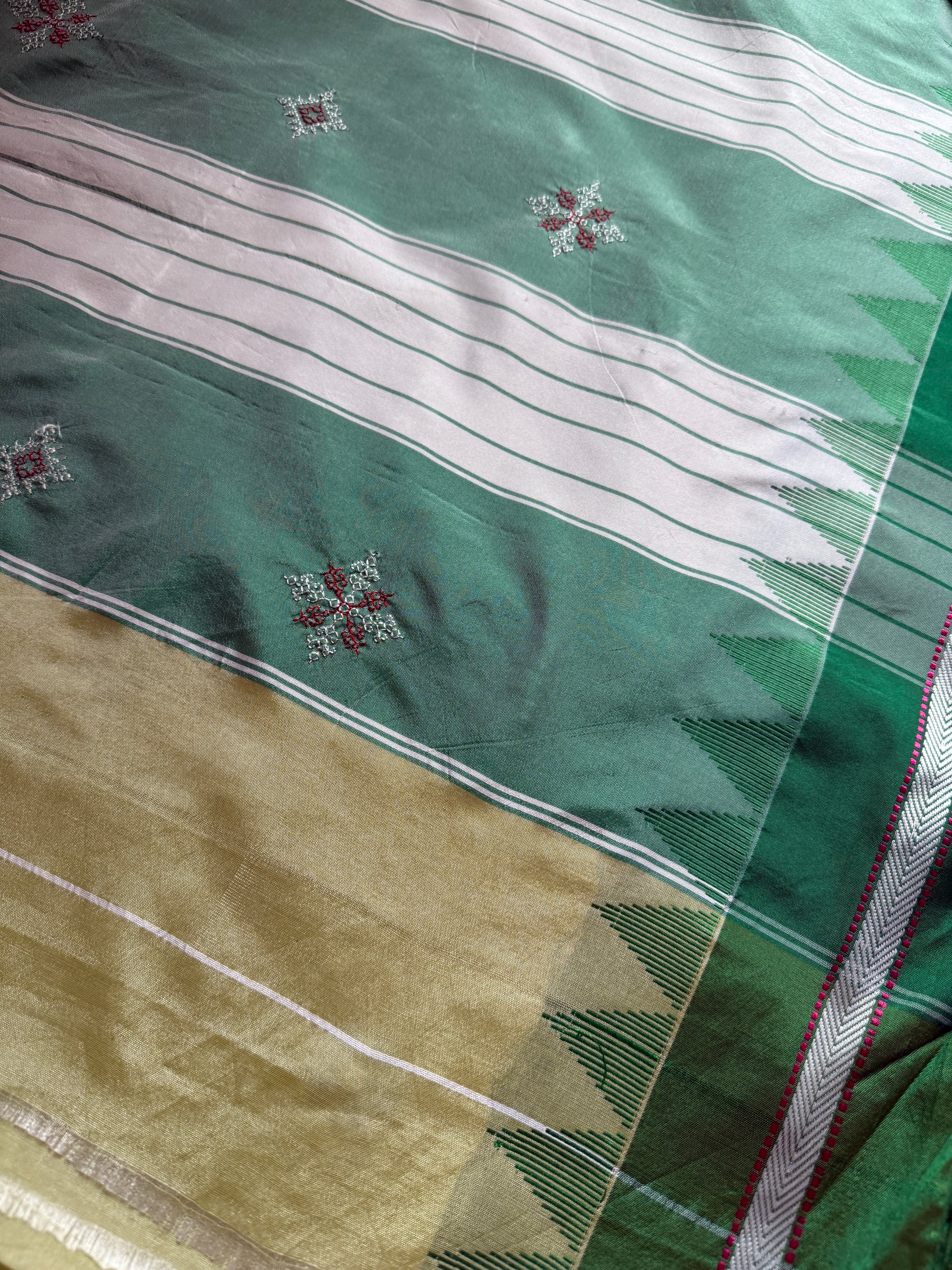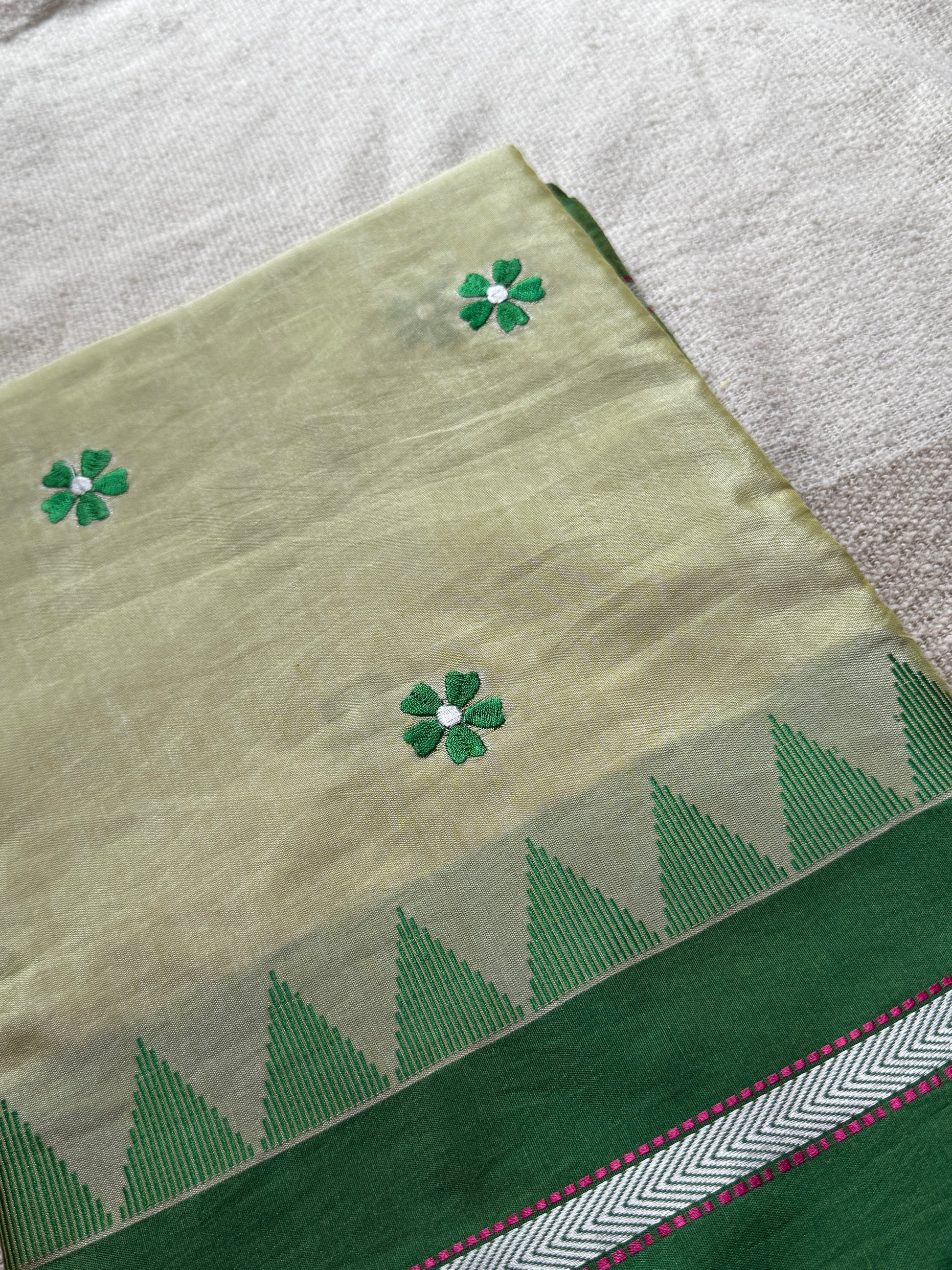 Lemon Yellow With Green Sadafuli Irkal Saree
